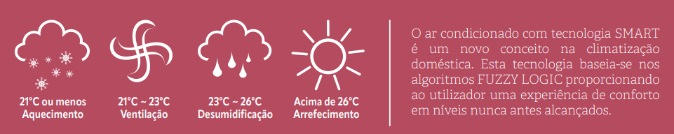 Pressionando o botão SMART no comando remoto o equipamento acionará o modo de funcionamento mais confortável, em função da temperatura do compartimento.